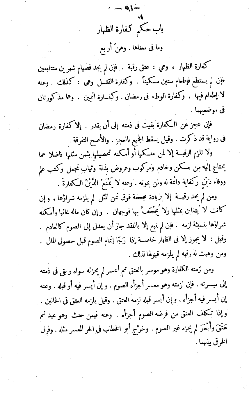 باب حكم كفارة الظهار وما في معناها وهن أربع
