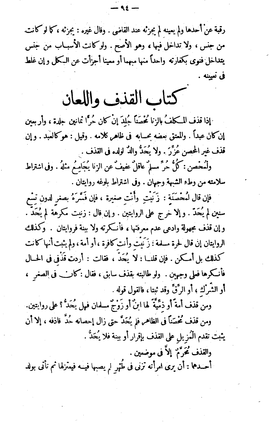 إذا قذف المكلف بالزنا محصنا جلد إن كان حرا ثمانين جلدة وأربعين إن كان عبدا والمعتق بعضه بحسابه في ظاهر كلامه وقيل هو كالعبد وإن قذف غير المحصن عزر ولا يحد والد لولده في القذف.
