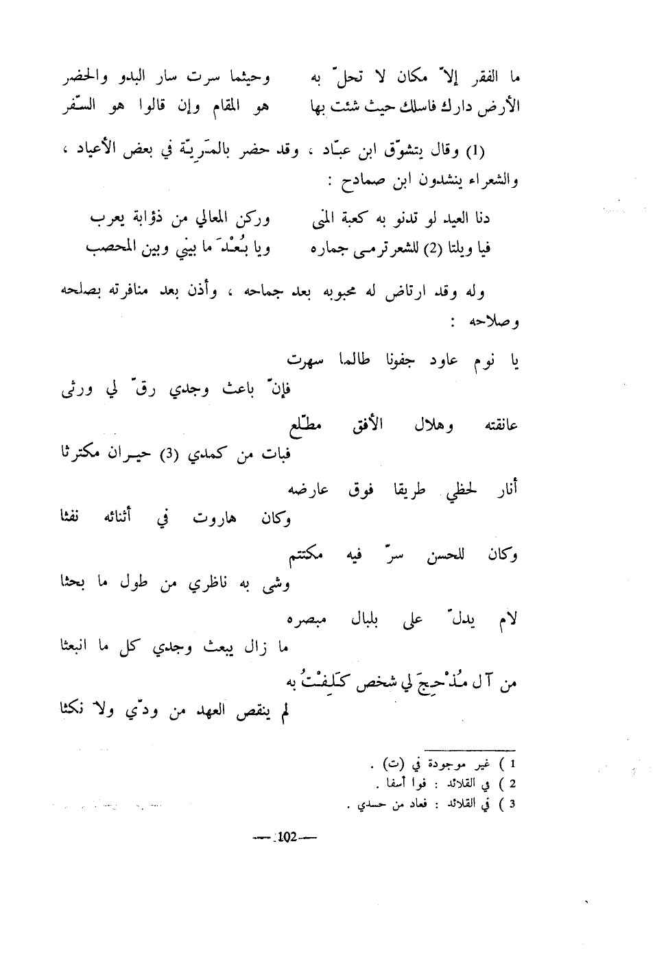 وقال يتشوّق ابن عبّاد، وقد حضر بالمَريّة في بعض الأعياد، والشعراء ينشدون ابن صمادح: