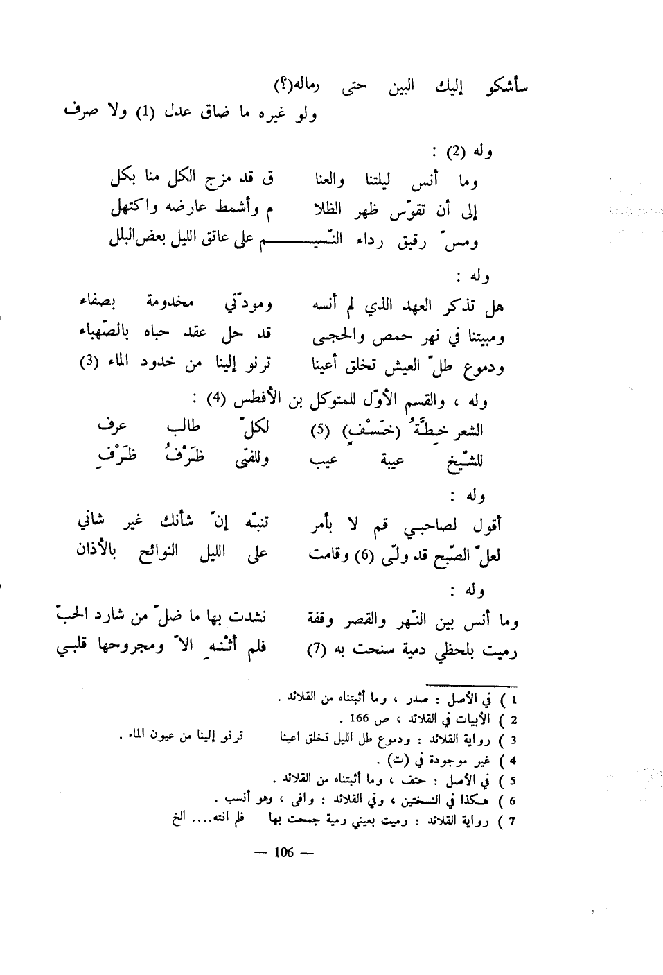 سأشكو إليك البين حتى رماله ... ولو غيره ما ضاق عدل ولا صرف
