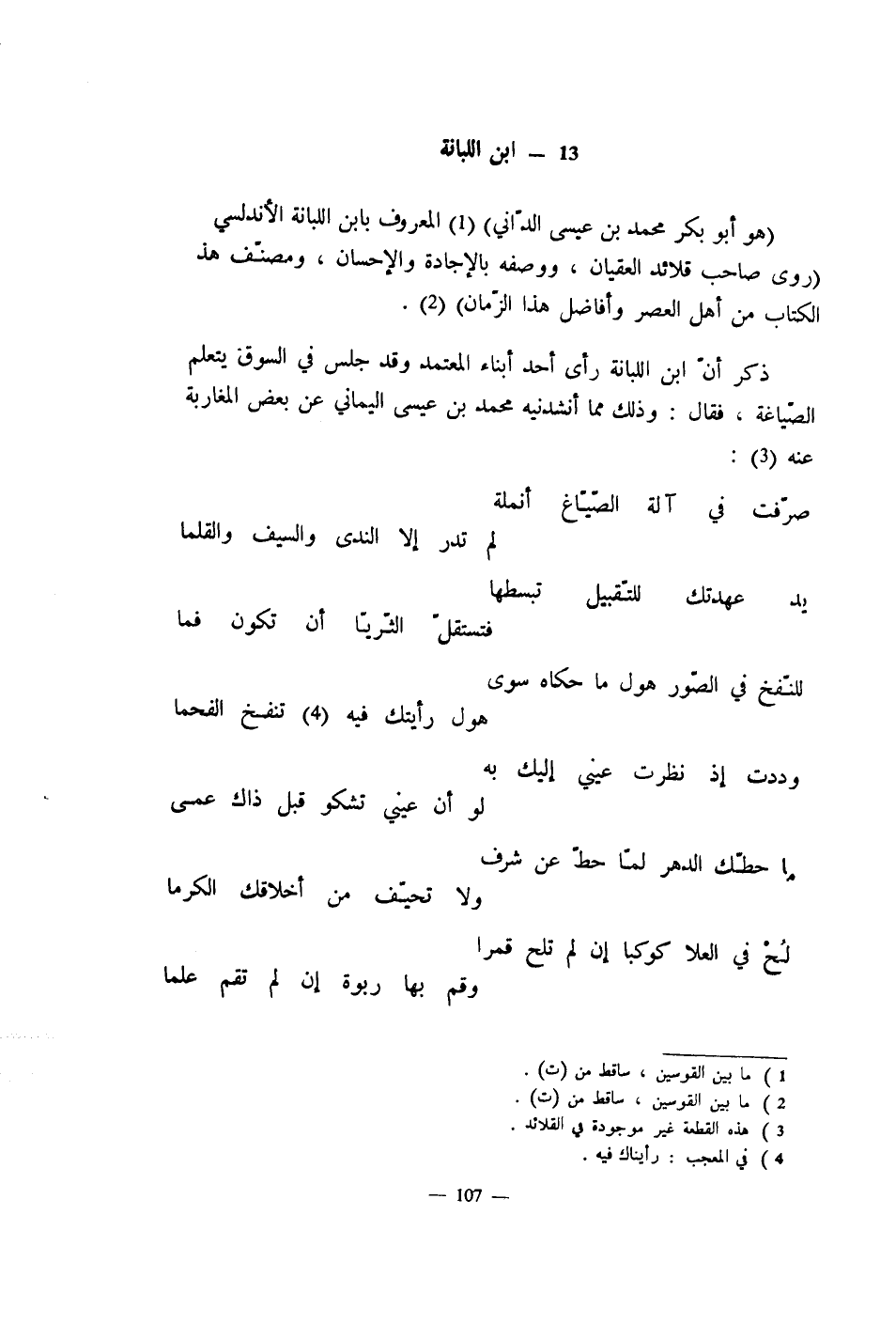 ذكر أنّ ابن اللبانة رأى أحد أبناء المعتمد وقد جلس في السوق يتعلم الصّياغة، فقال: وذلك مما أنشدنيه محمد بن عيسى اليماني عن بعض المغاربة عنه: