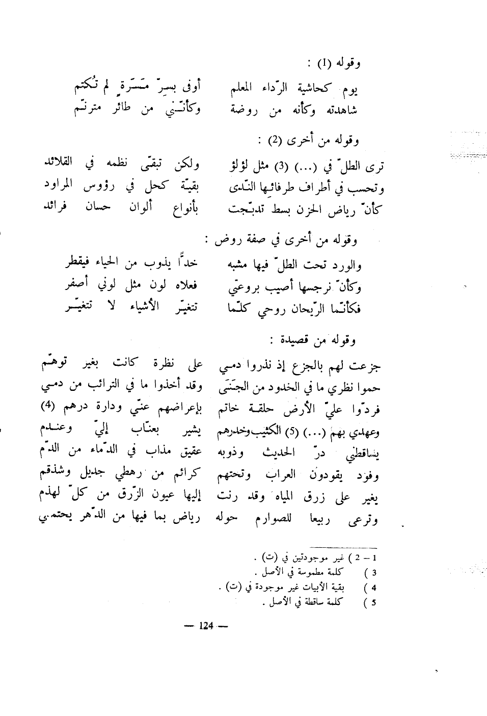 ترى الطلّ في ... مثل لؤلؤ ... ولكن تبقّى نظمه في القلائد