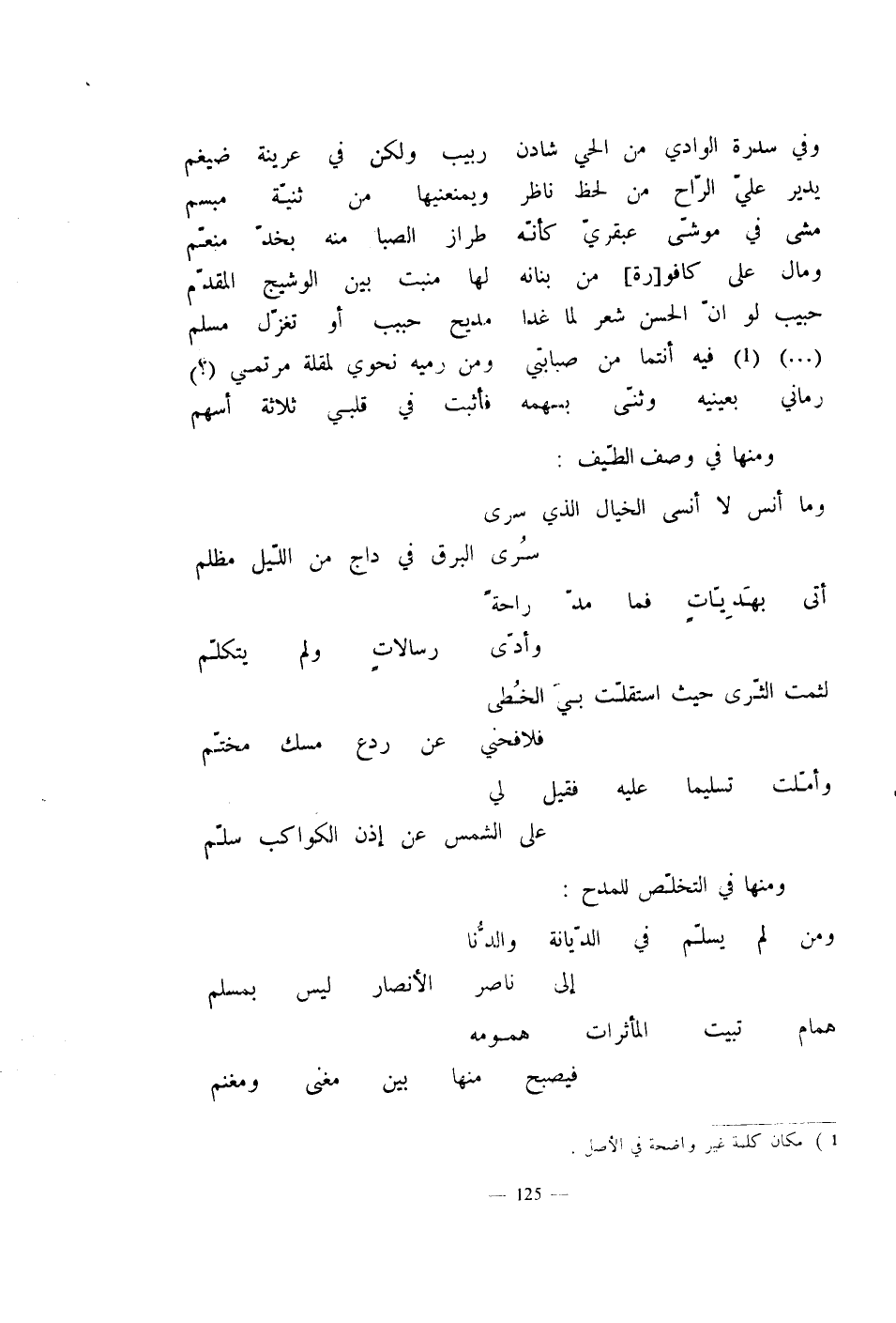 ومنها في التخلّص للمدح: