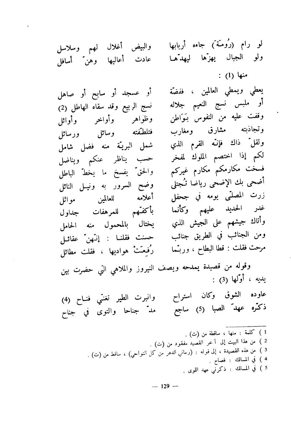 وقوله من قصيدة يمدحه ويصف النيروز والملاهي التي حضرت بين يديه، أوّلها: