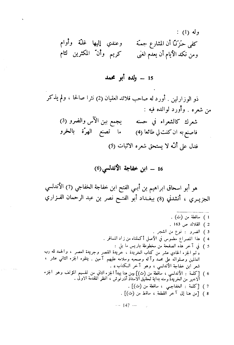 هو أبو إسحاق ابراهيم بن أبي الفتح ابن خفاجة الخفاجي الأندلسي الجزيري، أنشدني ببغداد أبو الفتح نصر بن عبد الرحمان الفزاري