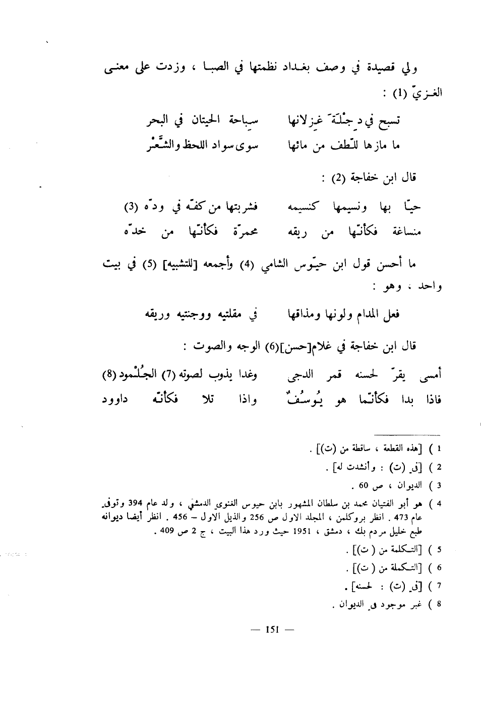 ولي قصيدة في وصف بغداد نظمتها في الصبا، وزدت على معنى الغزيّ: