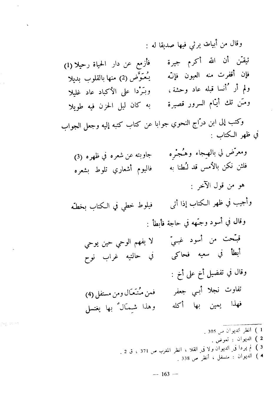 وكتب الى ابن درّاج النحوي جواباً عن كتاب كتبه إليه وجعل الجواب في ظهر الكتاب: