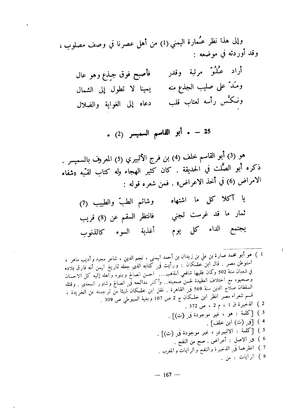 والى هذا نظر عُمارة اليمني من أهل عصرنا في وصف مصلوب، وقد أوردته في موضعه:
