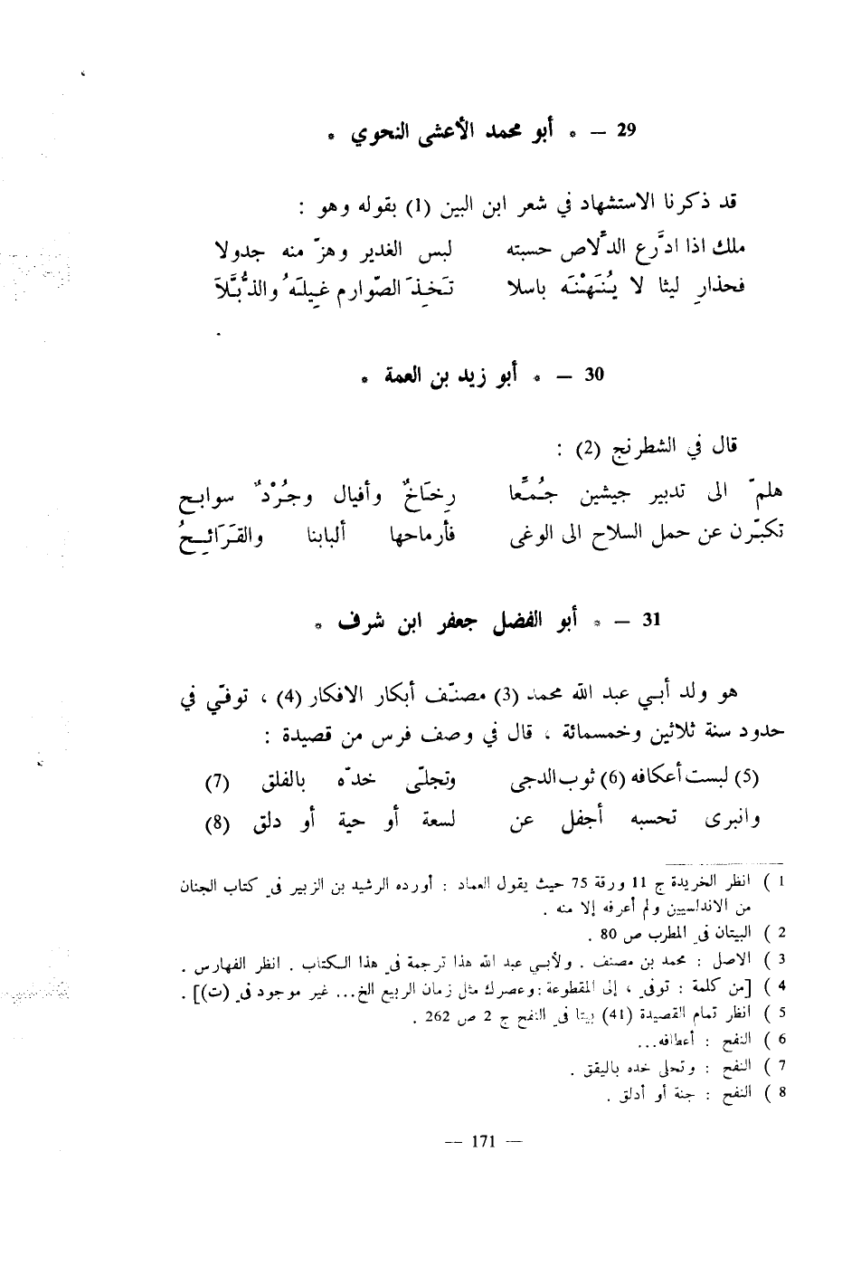 قد ذكرنا الاستشهاد في شعر ابن البين بقوله وهو: