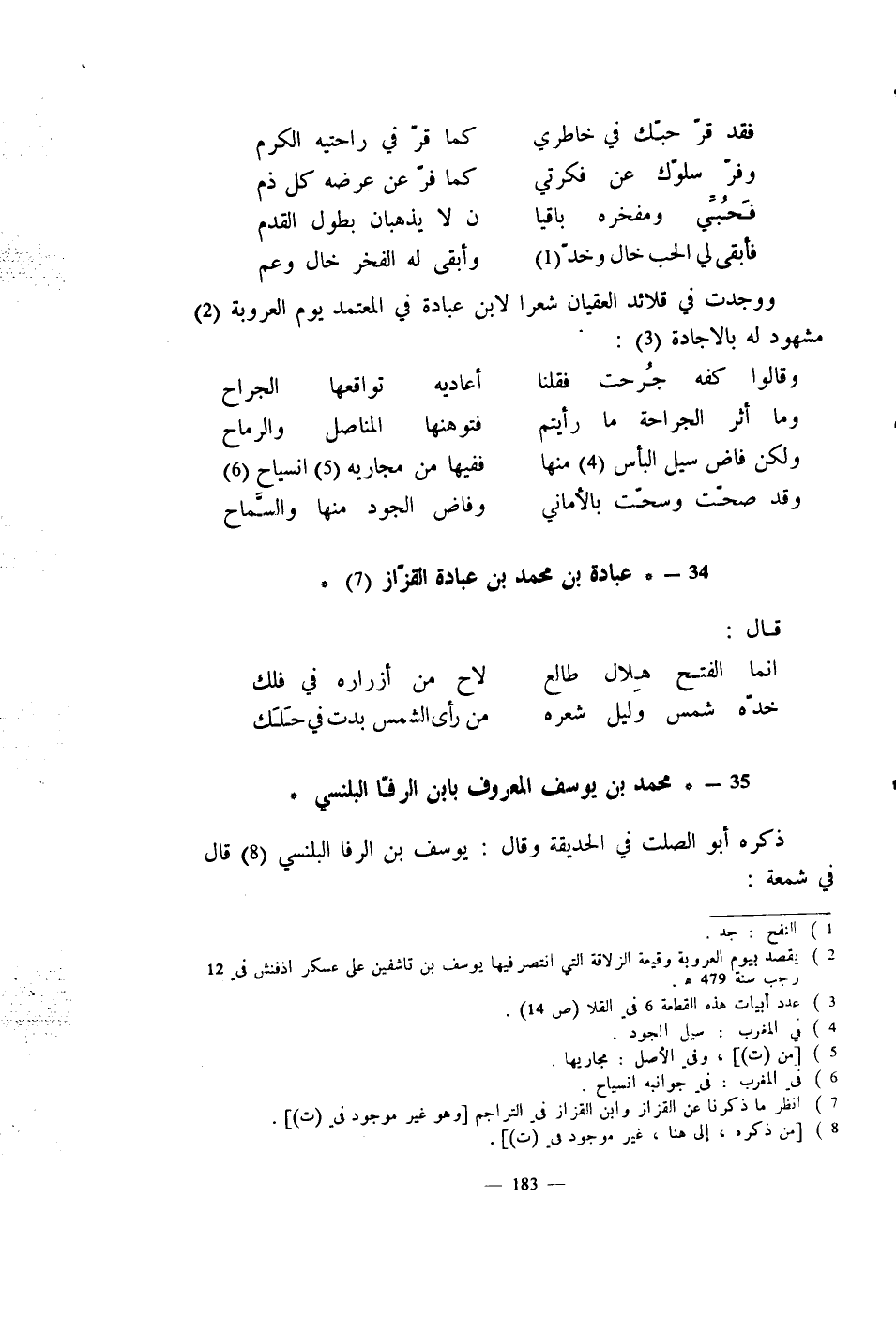 ووجدت في قلائد العقيان شعراً لابن عبادة في المعتمد يوم العروبة مشهود له بالإجادة: