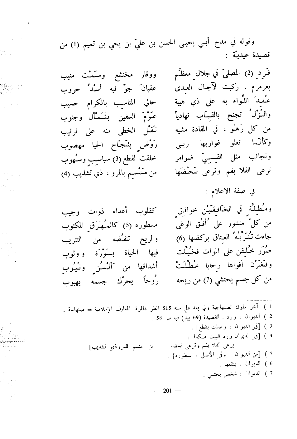 وقوله في مدح أبي يحيى الحسن بن عليّ بن يحيى بن تميم من قصيدة عيديّة: