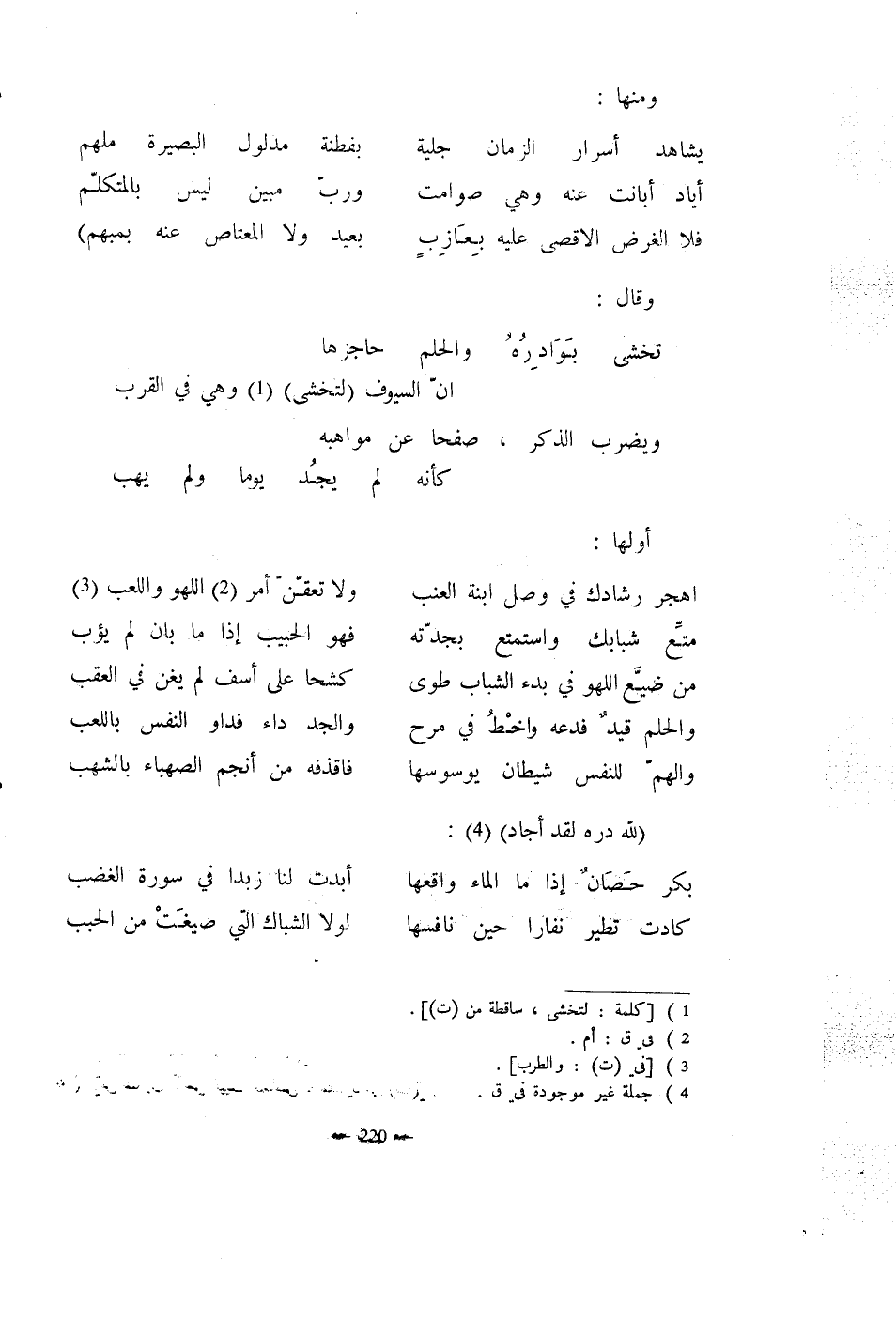 من ضيّع اللهو في بدء الشباب طوى ... كشحاً على أسف لم يغن في العقب