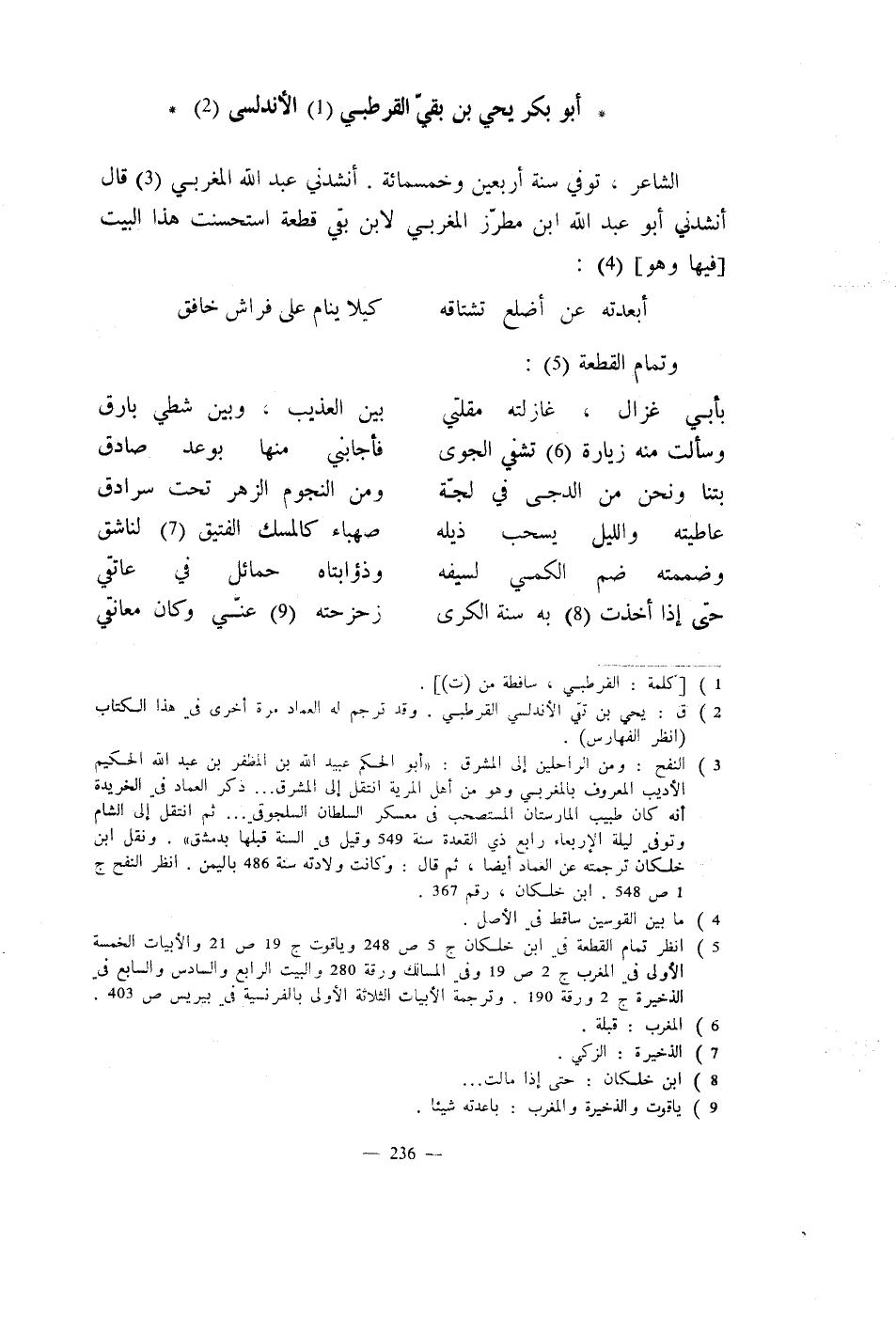 الشاعر، توفي سنة أربعين وخمسمائة. أنشدني عبد الله المغربي قال أنشدني أبو عبد الله ابن مطرّز المغربي لابن بقي قطعة استحسنت هذا البيت فيها وهو:
