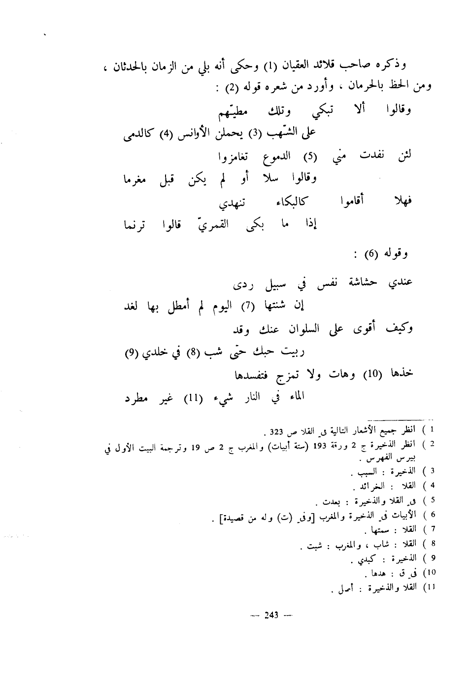 وذكره صاحب قلائد العقيان وحكى أنه بلي من الزمان بالحدثان، ومن الحظ بالحرمان، وأورد من شعره قوله:
