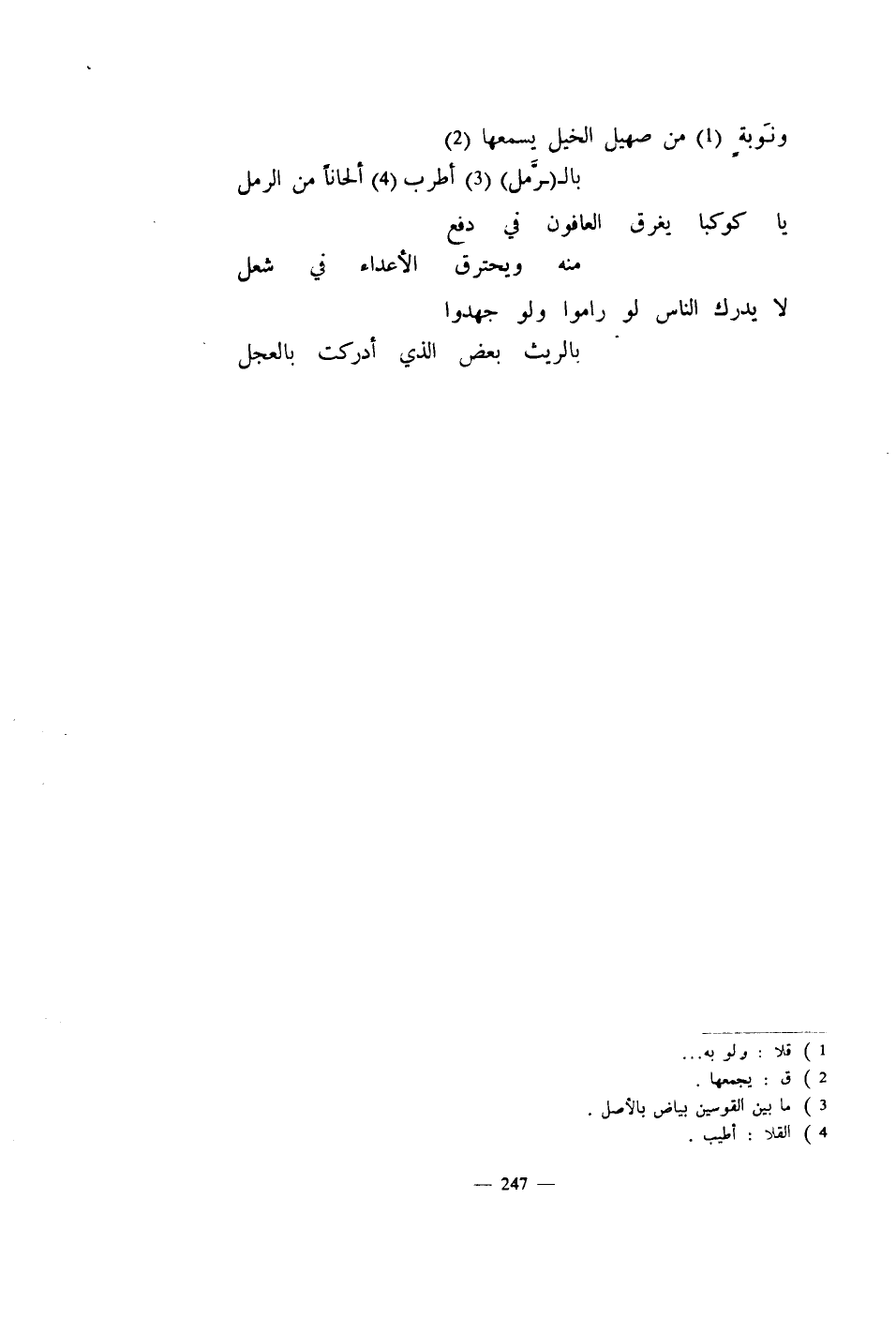 ونَوبةٍ من صهيل الخيل يسمعها ... بالرّمل أطرب ألحاناً من الرمل