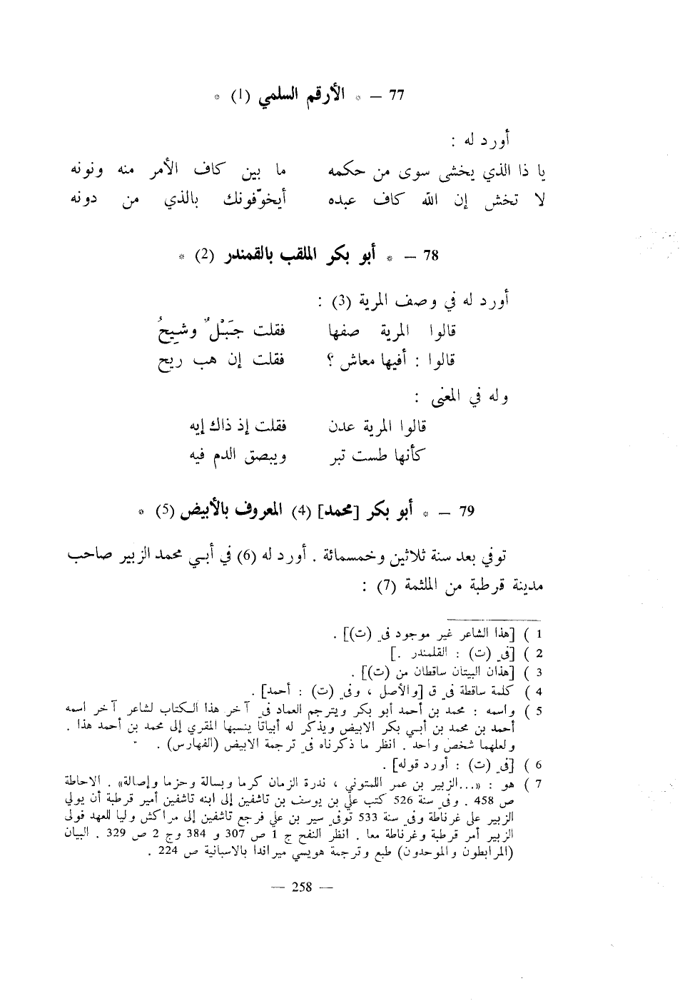 توفي بعد سنة ثلاثين وخمسمائة. أورد له في أبي محمد الزبير صاحب مدينة قرطبة من الملثمة: