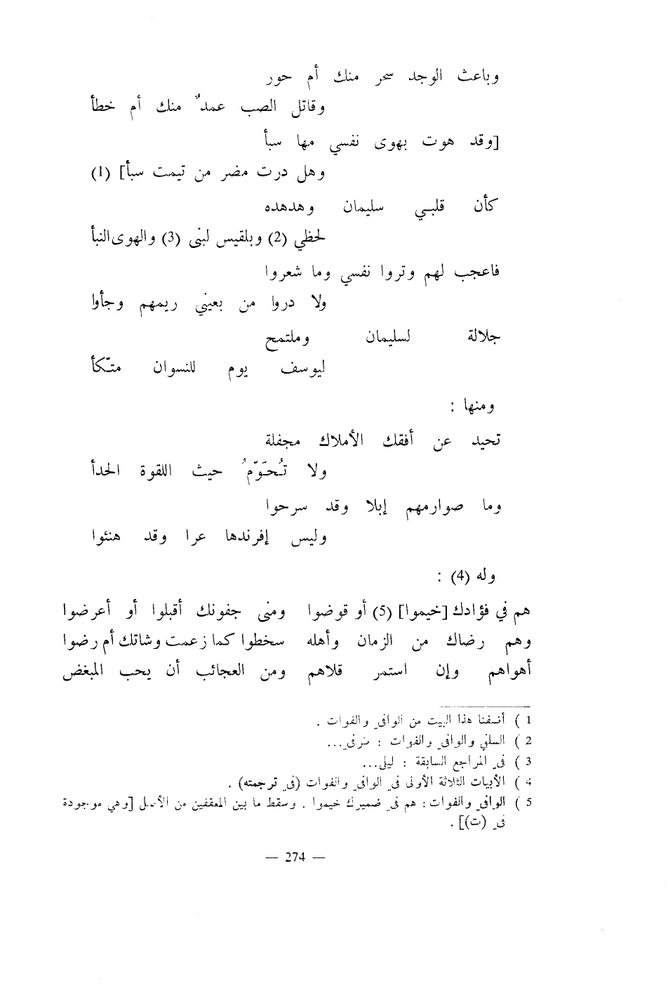 كأن قلبي سليمان وهدهده ... لحظي وبلقيس لبنى والهوى النبأ