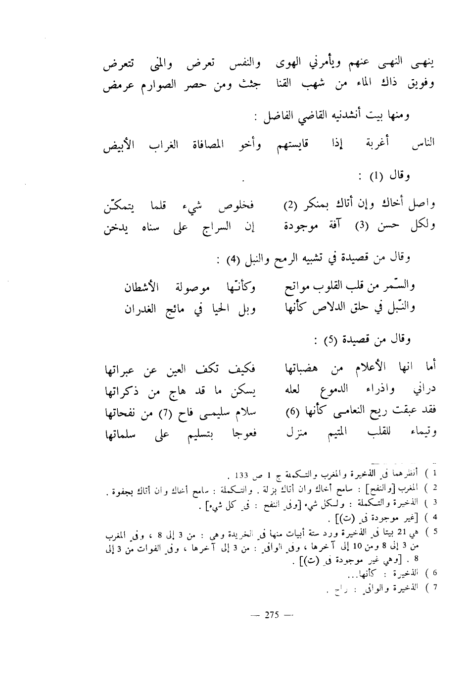 ومنها بيت أنشدنيه القاضي الفاضل: