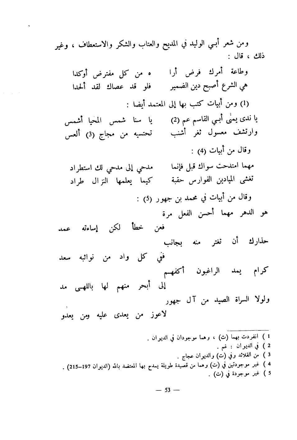 ومن شعر أبي الوليد في المديح والعتاب والشكر والاستعطاف، وغير ذلك، قال: