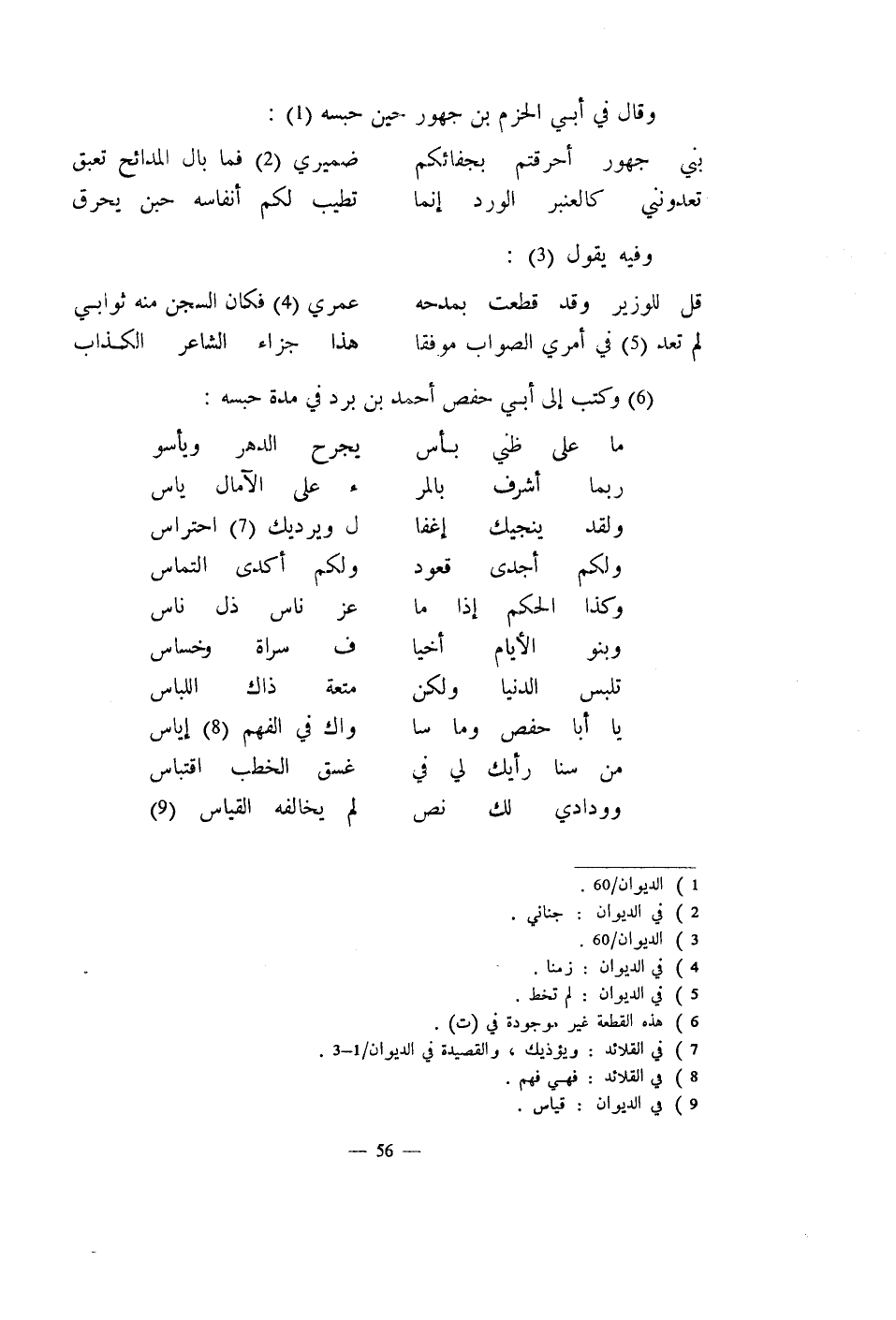 وكتبالى أبي حفص أحمد بن برد في مدة حبسه: