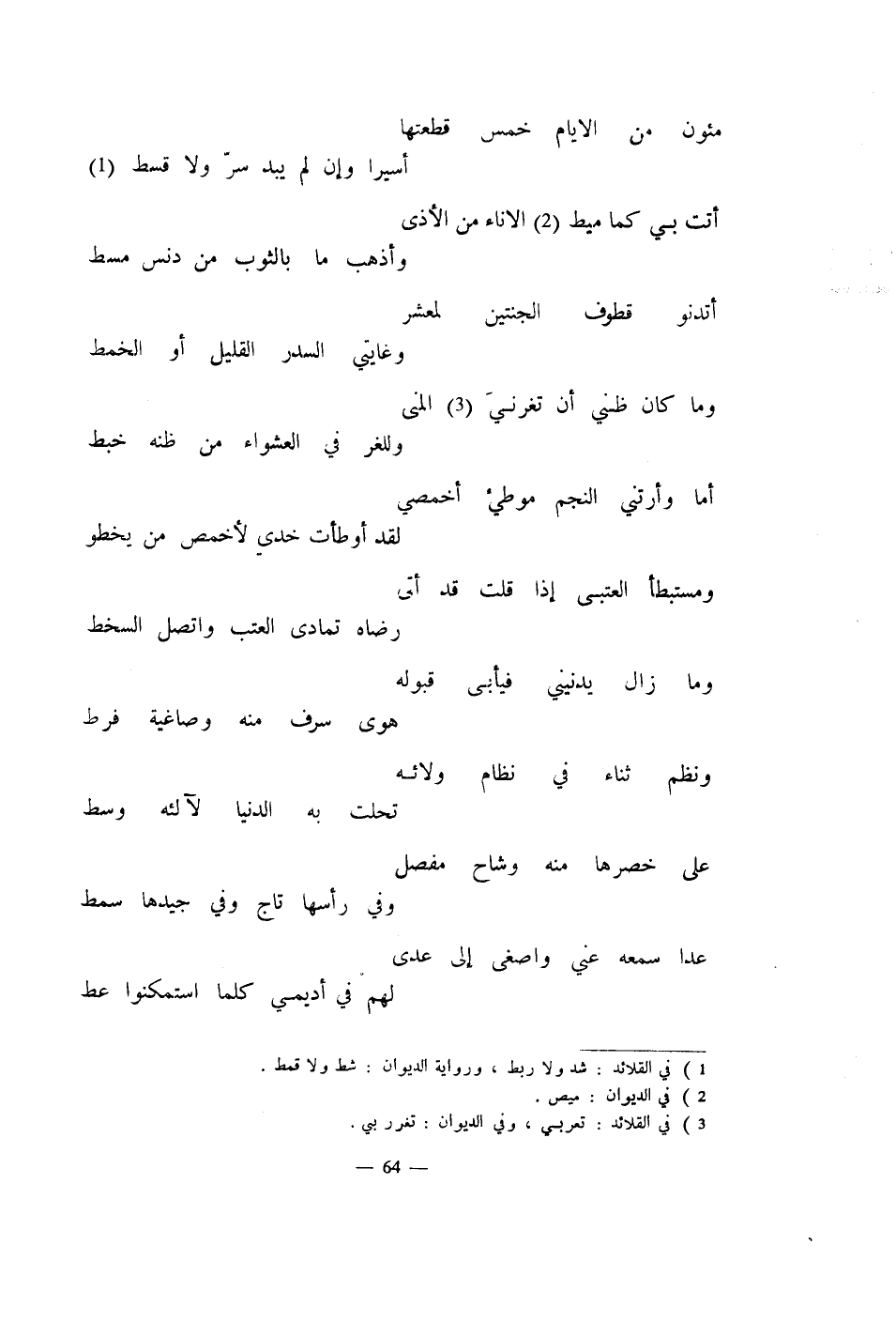 مئون من الأيام خمس قطعتها ... أسيراً وإن لم يبد سرّ ولا قسط