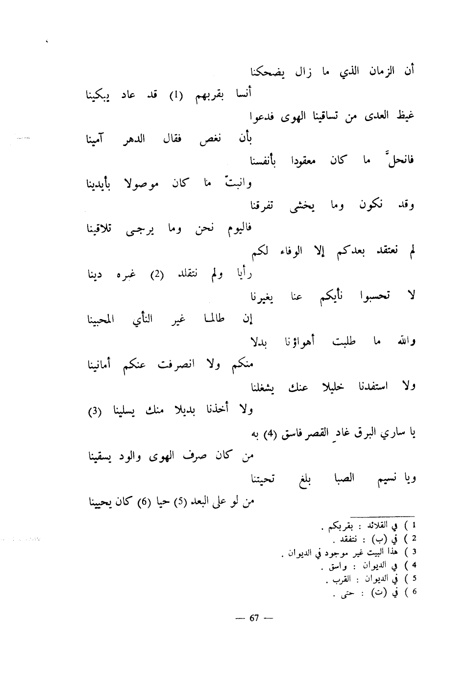 والله ما طلبت أهواؤنا بدلاً ... منكم ولا انصرفت عنكم أمانينا