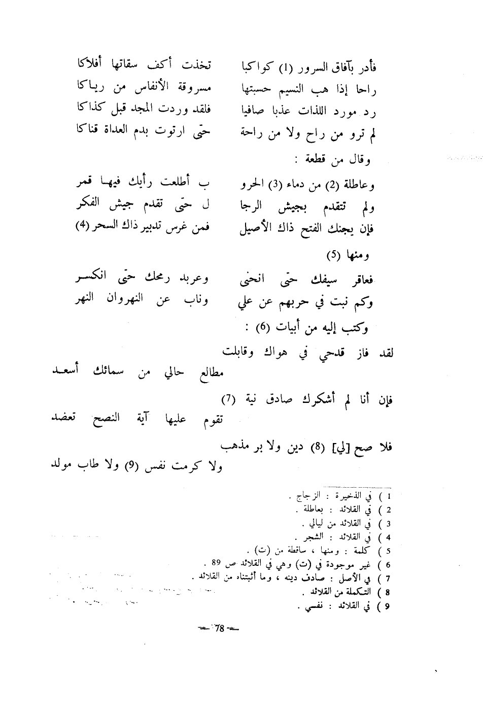 وعاطلة من دماء الحرو ... ب أطلعت رأيك فيها قمر