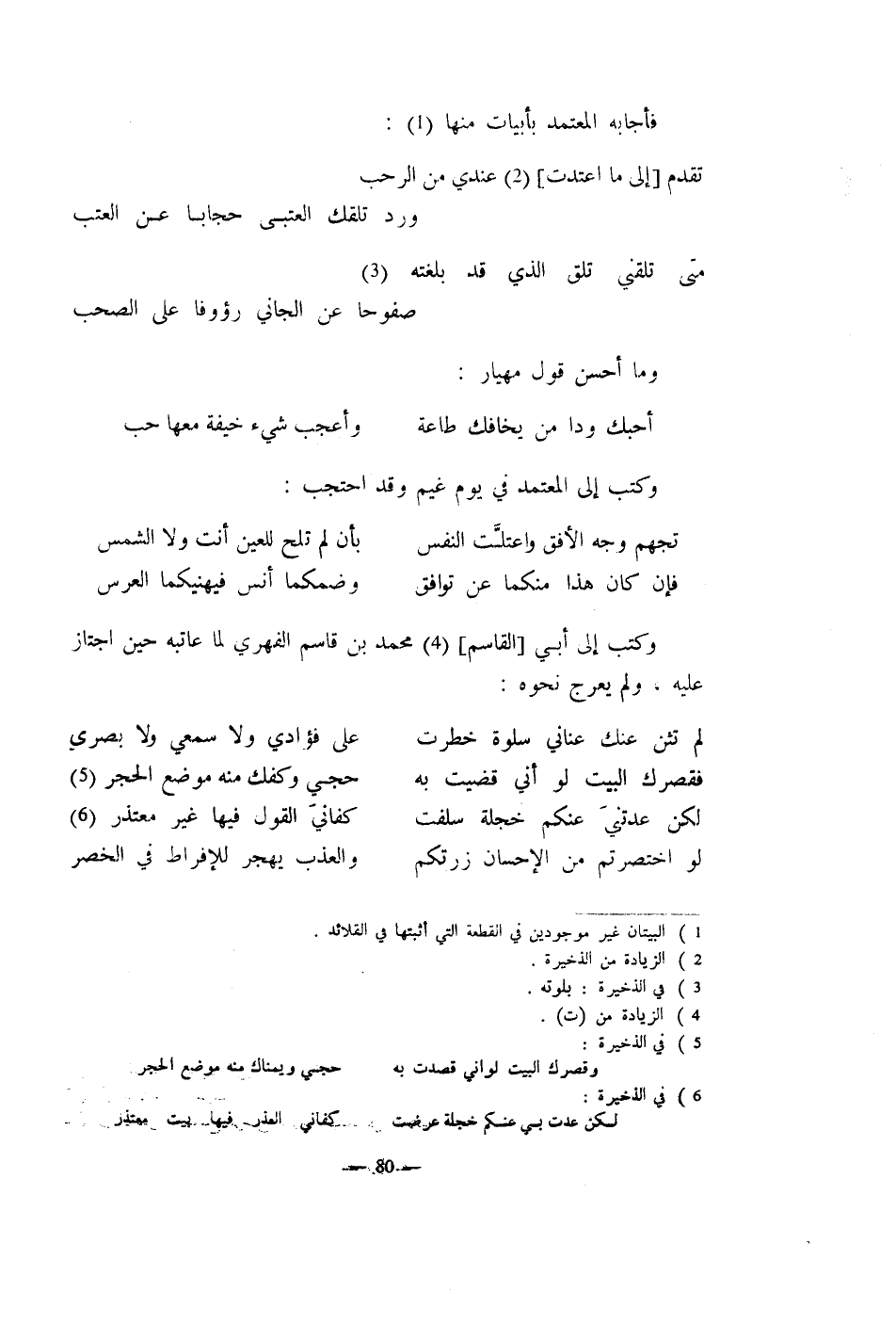 وكتب الى أبي القاسم محمد بن قاسم الفهري لما عاتبه حين اجتاز عليه، ولم يعرج نحوه: