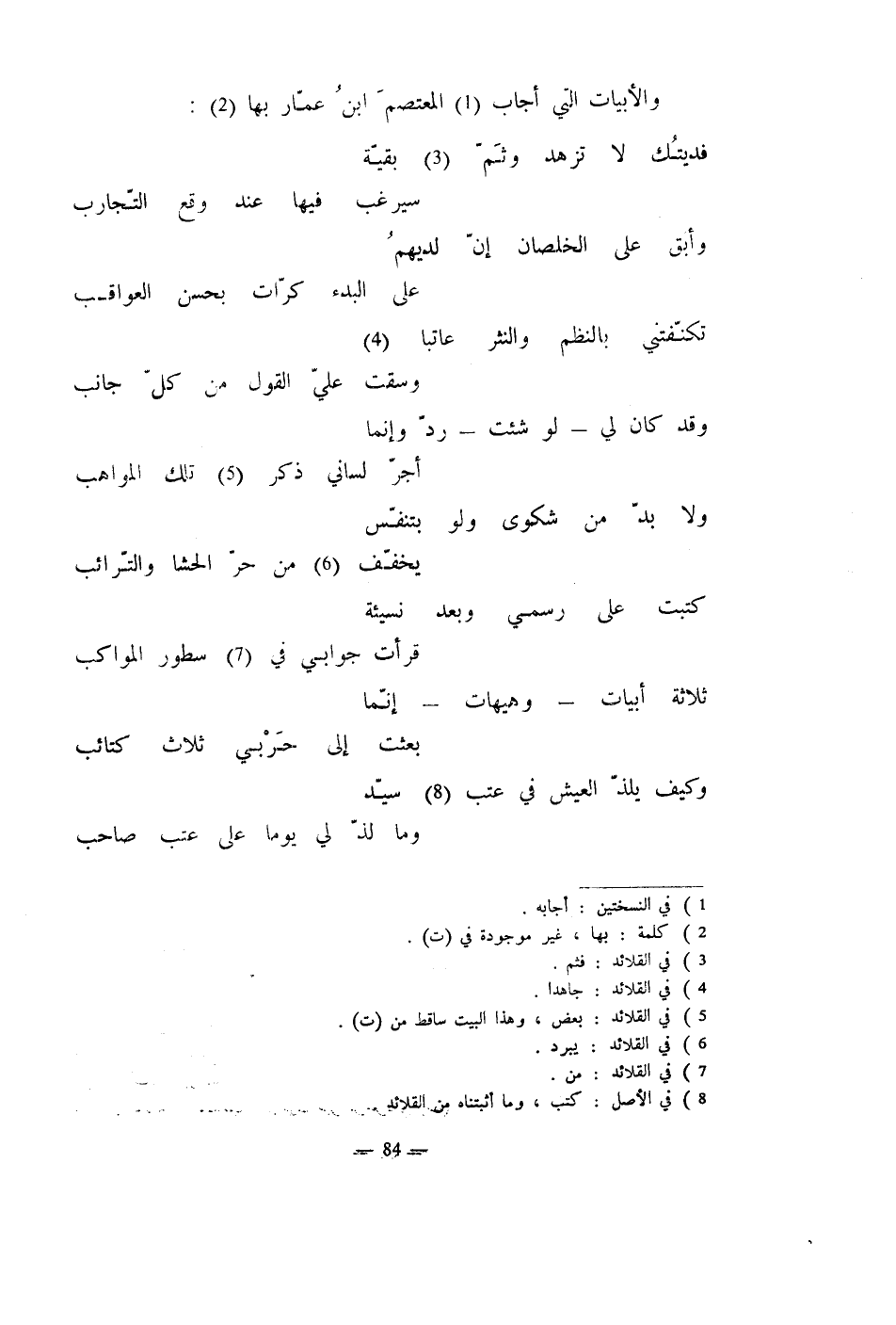 والأبيات التي أجاب المعتصمَ ابنُ عمار بها: