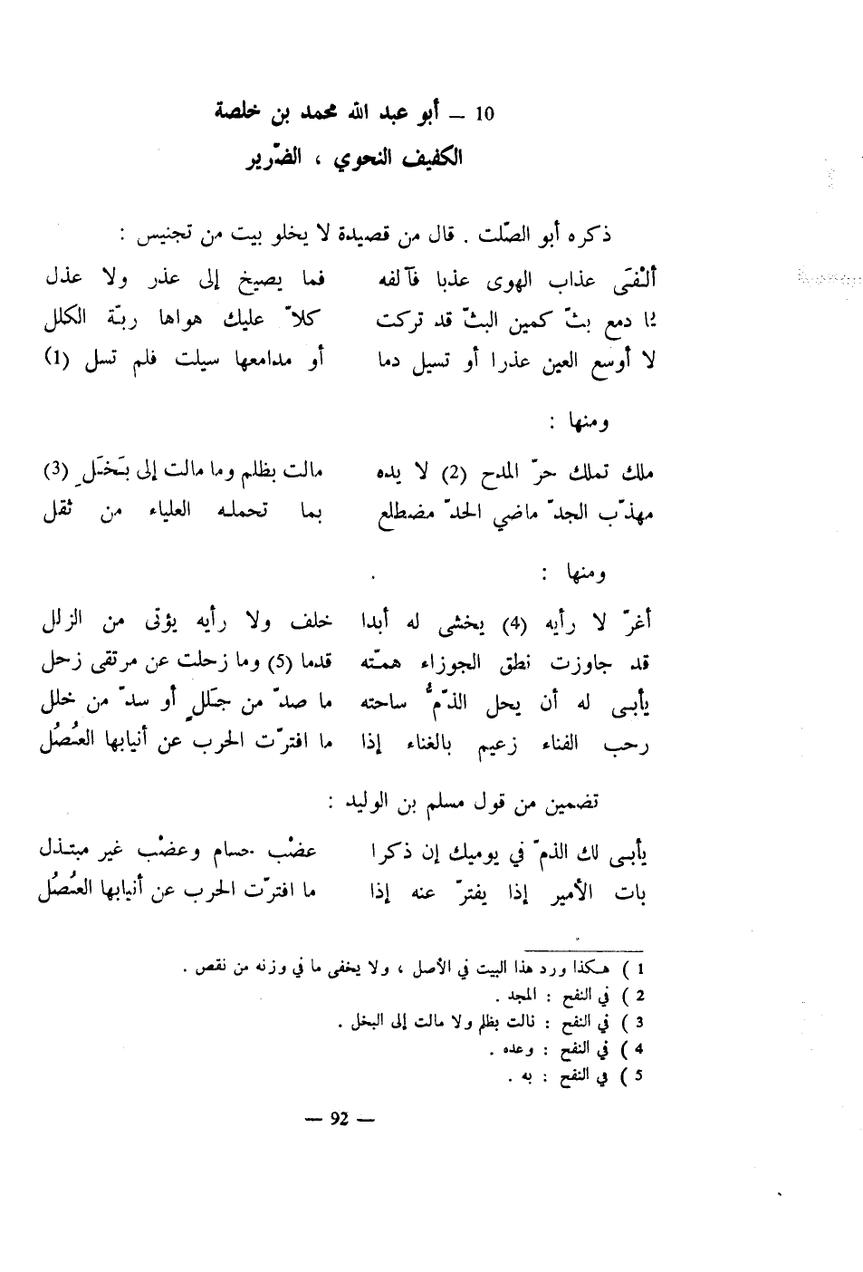 الكفيف النحوي، الضّرير ذكره أبو الصّلت. قال من قصيدة لا يخلو بيت من تجنيس: