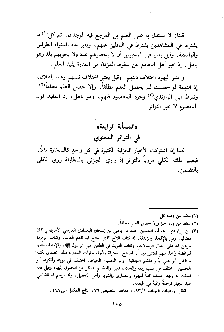 " المسألة الرابعة" في التواتر المعنوي