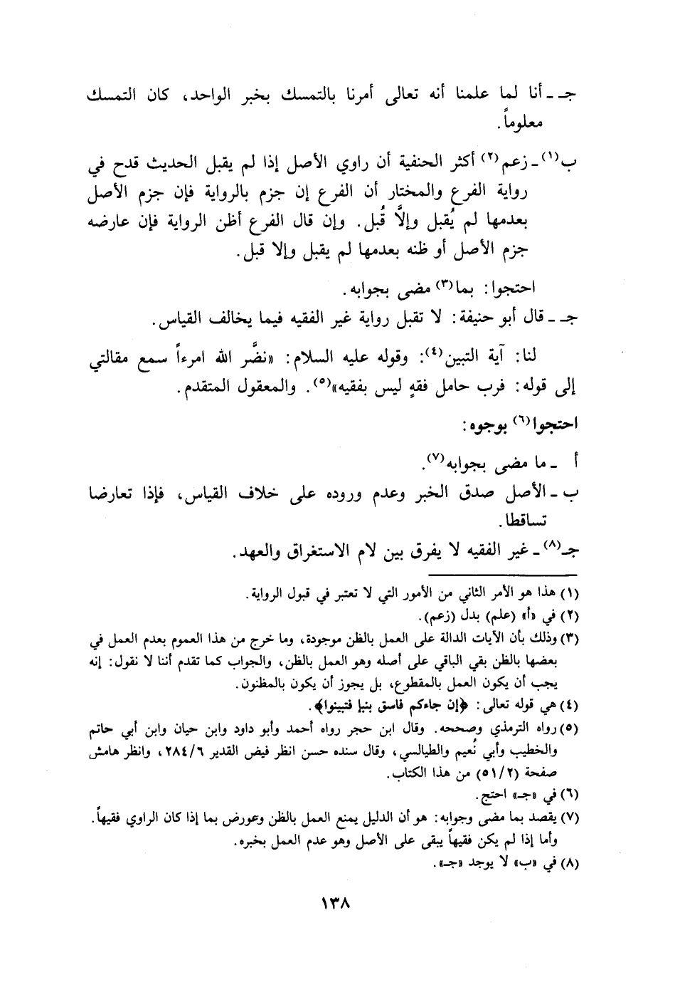 لنا: آية التبين (٤): وقوله عليه السلام: "نضَّر الله امرءًا سمع مقالتي إلى قوله: فرب حامل فقهٍ ليس بفقيه" (٥). والمعقول المتقدم.