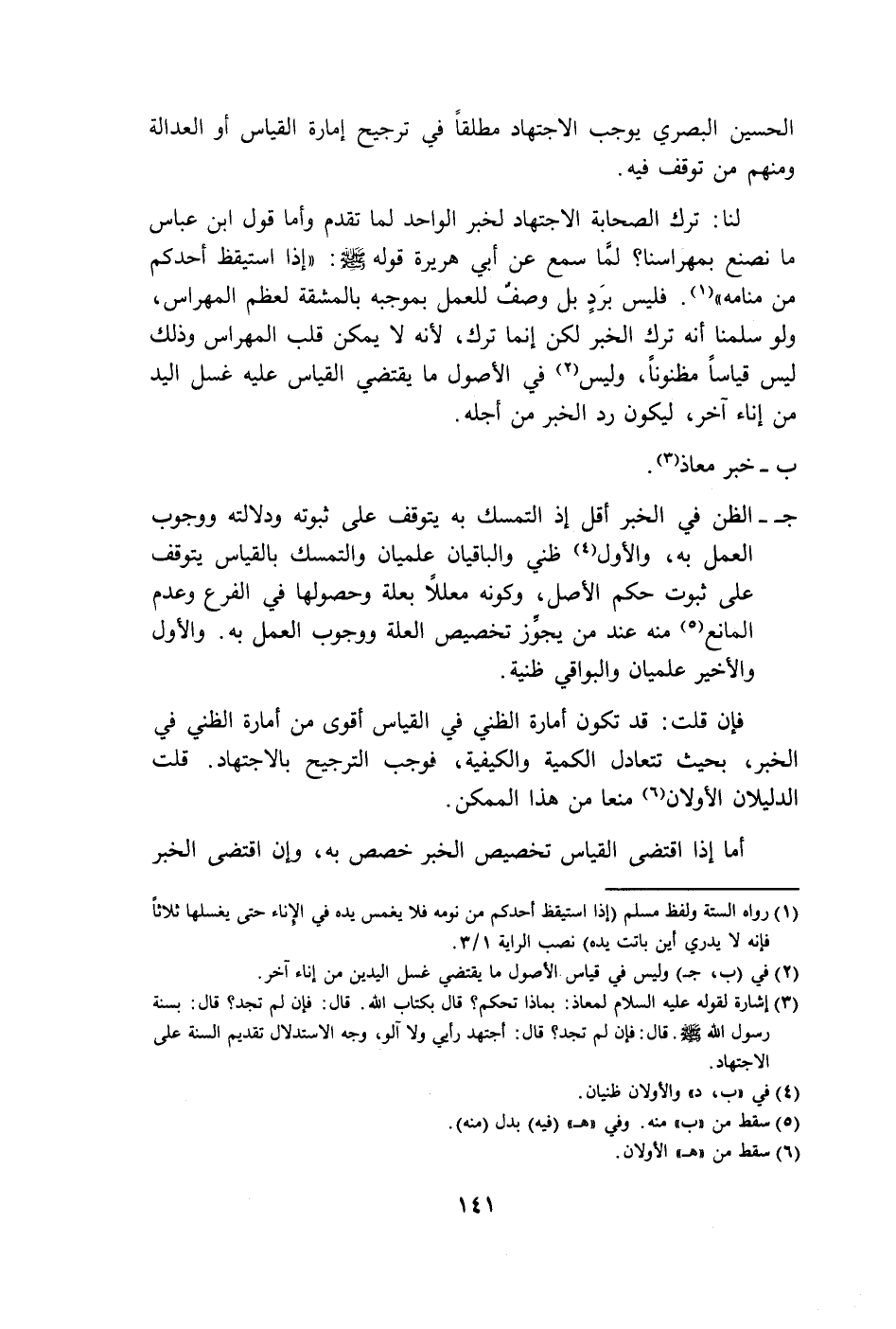 الحسين البصري يوجب الاجتهاد مطلقًا في ترجيح إمارة القياس أو العدالة ومنهم من توقف فيه.