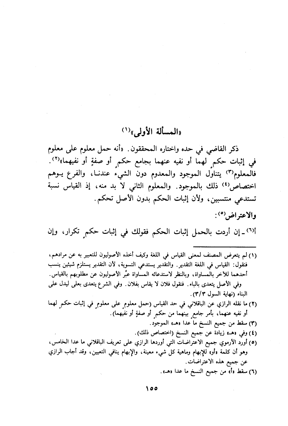 (٥) أورد الأرموي جميع الاعتراضات التي أوردها الرازي على تعريف الباقلاني ما عدا الخامس، وهو أن كلمة "أو" للإبهام وماهية كل شيء معينة، والإبهام ينافي التعيين، وقد أجاب الرازي عن جميع هذه الاعتراضات.
