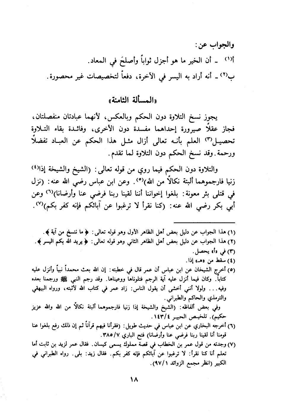 (١) هذا الجواب عن دليل بعض أهل الظاهر الأول وهو قوله تعالى: {مَا نَنْسَخْ مِنْ آيَةٍ}.
