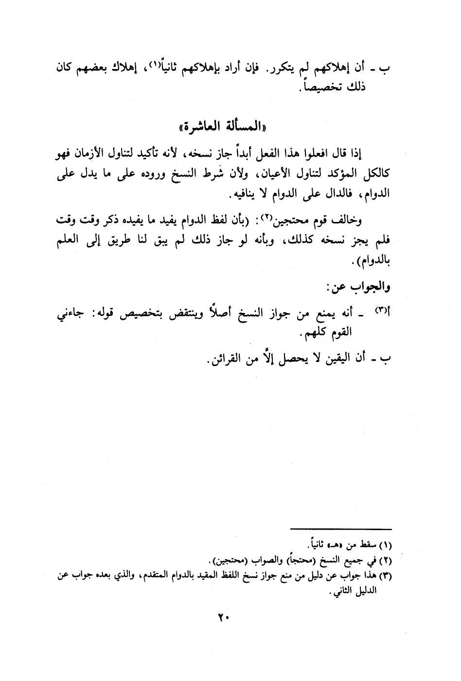 (٣) هذا جواب عن دليل من منع جواز نسخ اللفظ المقيد بالدوام المتقدم، والذي بعده جواب عن الدليل الثاني.