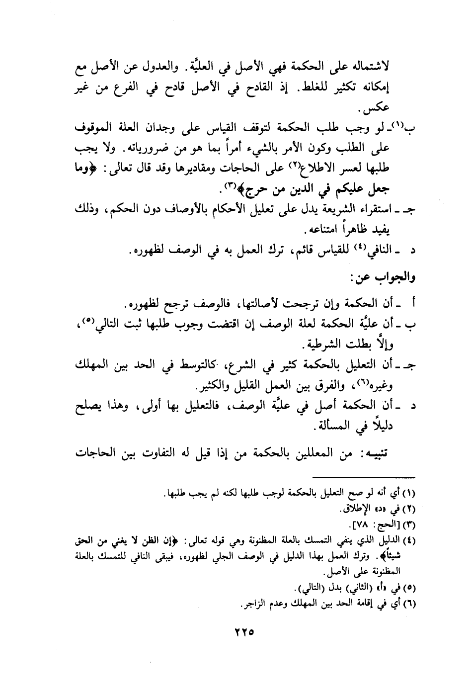 ب (١) - لو وجب طلب الحكمة لتوقف القياس على وجدان العلة الموقوف على الطلب وكون الأمر بالشيء أمراً بما هو من ضرورياته. ولا يجب طلبها لعسر الاطلاع (٢) على الحاجات ومقاديرها وقد قال تعالى: {وَمَا جَعَلَ عَلَيْكُمْ فِي الدِّينِ مِنْ حَرَجٍ} (٣).