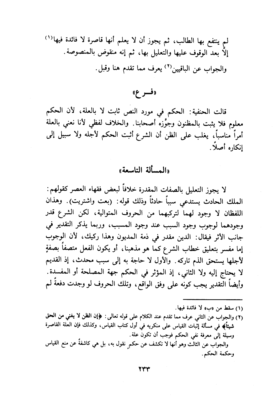 " المسألة التاسعة"