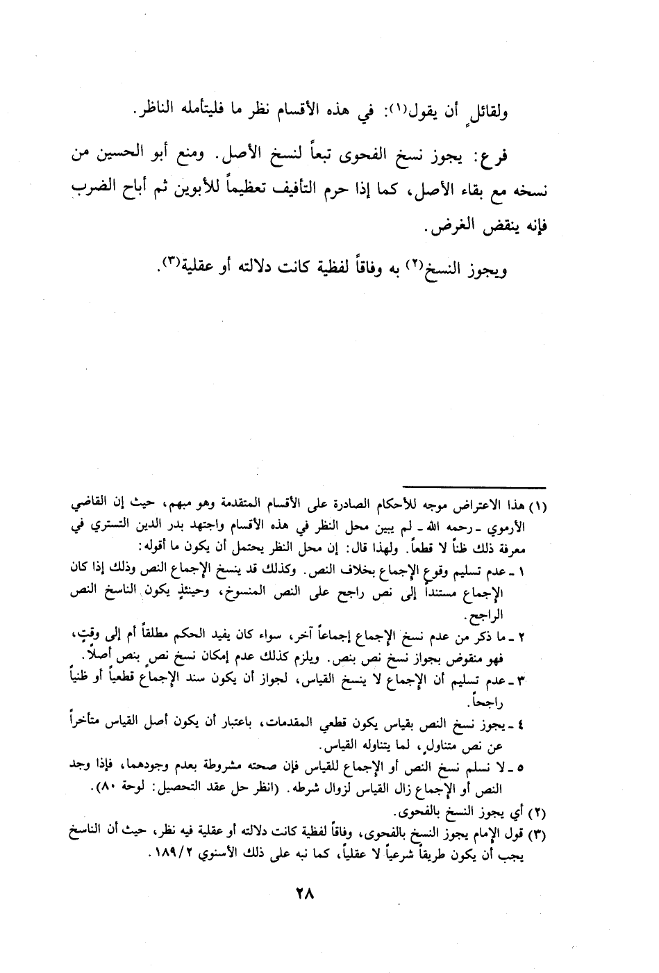 (٣) قول الإمام يجوز النسخ بالفحوى، وفاقا لفظية كانت دلالته أو عقلية فيه نظر، حيث أن الناسخ يجب أن يكون طريقا شرعيا لا عقلياً، كما نبه على ذلك الأسنوي ٢/ ١٨٩.