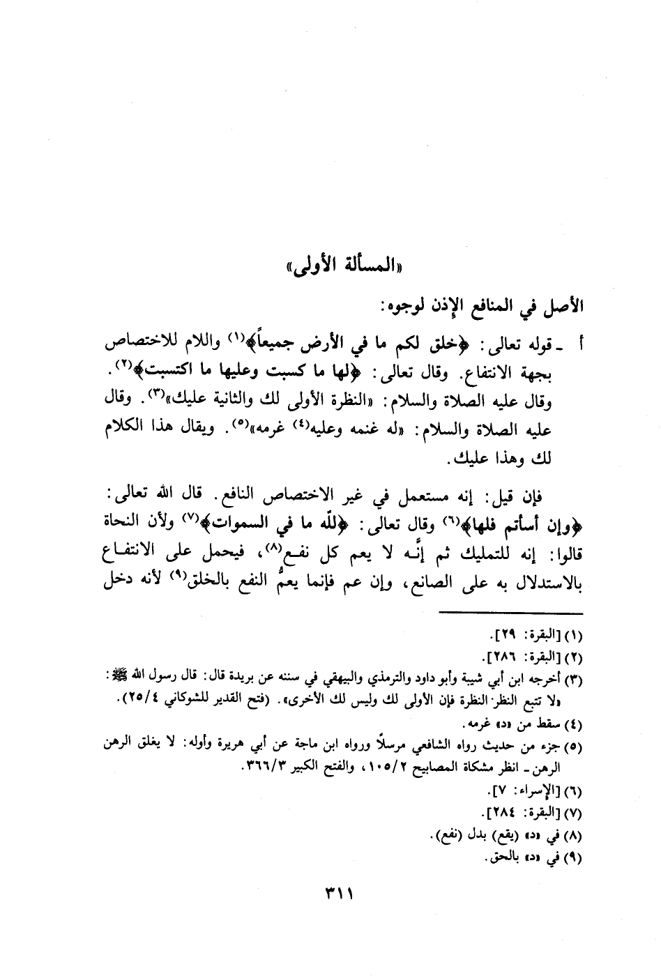 أ- قوله تعالى: {خَلَقَ لَكُمْ مَا فِي الْأَرْضِ جَمِيعًا} (١) واللام للاختصاص بجهة الانتفاع. وقال تعالى: {لَهَا مَا كَسَبَتْ وَعَلَيْهَا مَا اكْتَسَبَتْ} (٢).