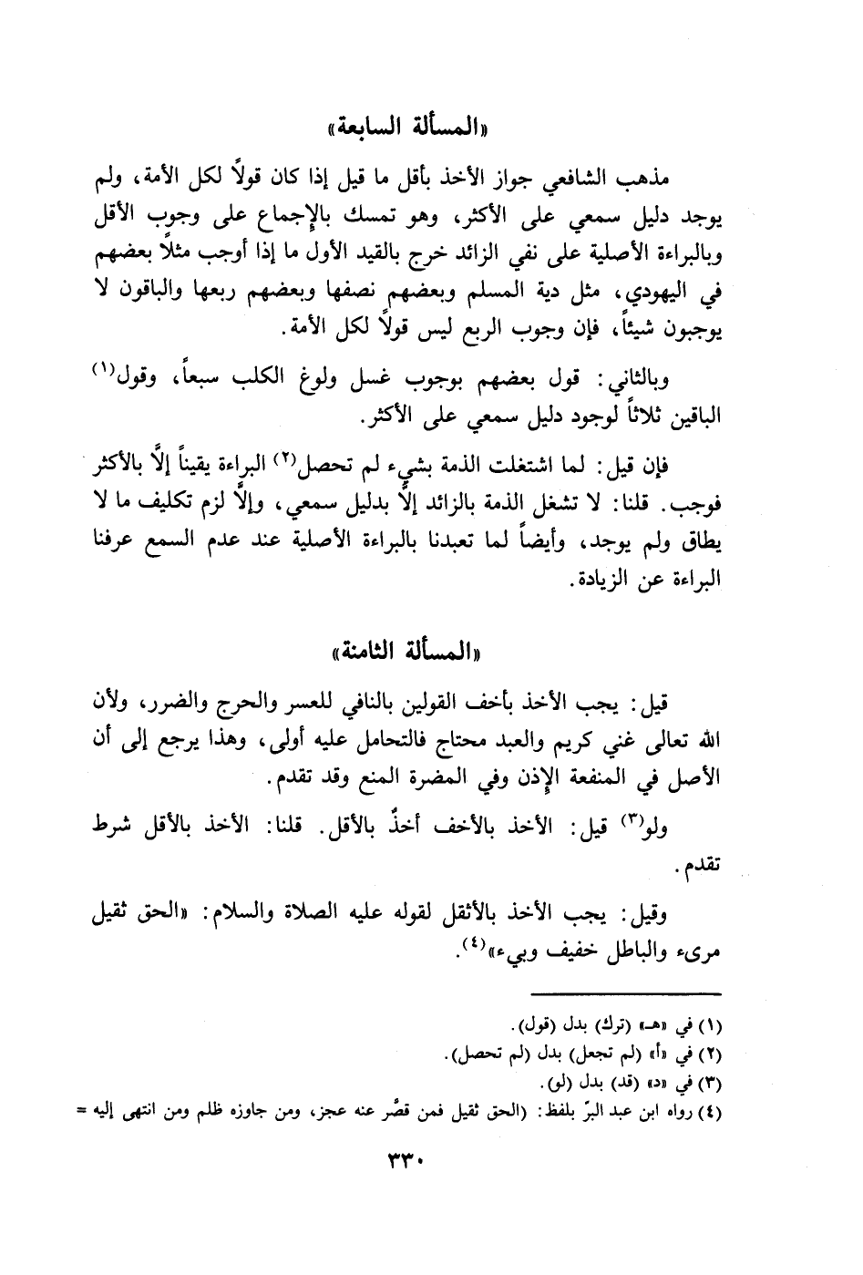 ولو (٣) قيل: الأخذ بالأخف أخذ بالأقل. قلنا: الأخذ بالأقل شرط تقدم.