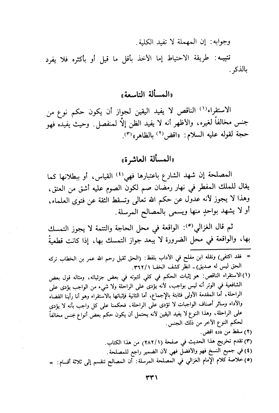 (٥) خلاصة كلام الإمام الغزالي في المصلحة المرسلة: أن المصالح تنقسم إلى ثلاثة أقسام: =
