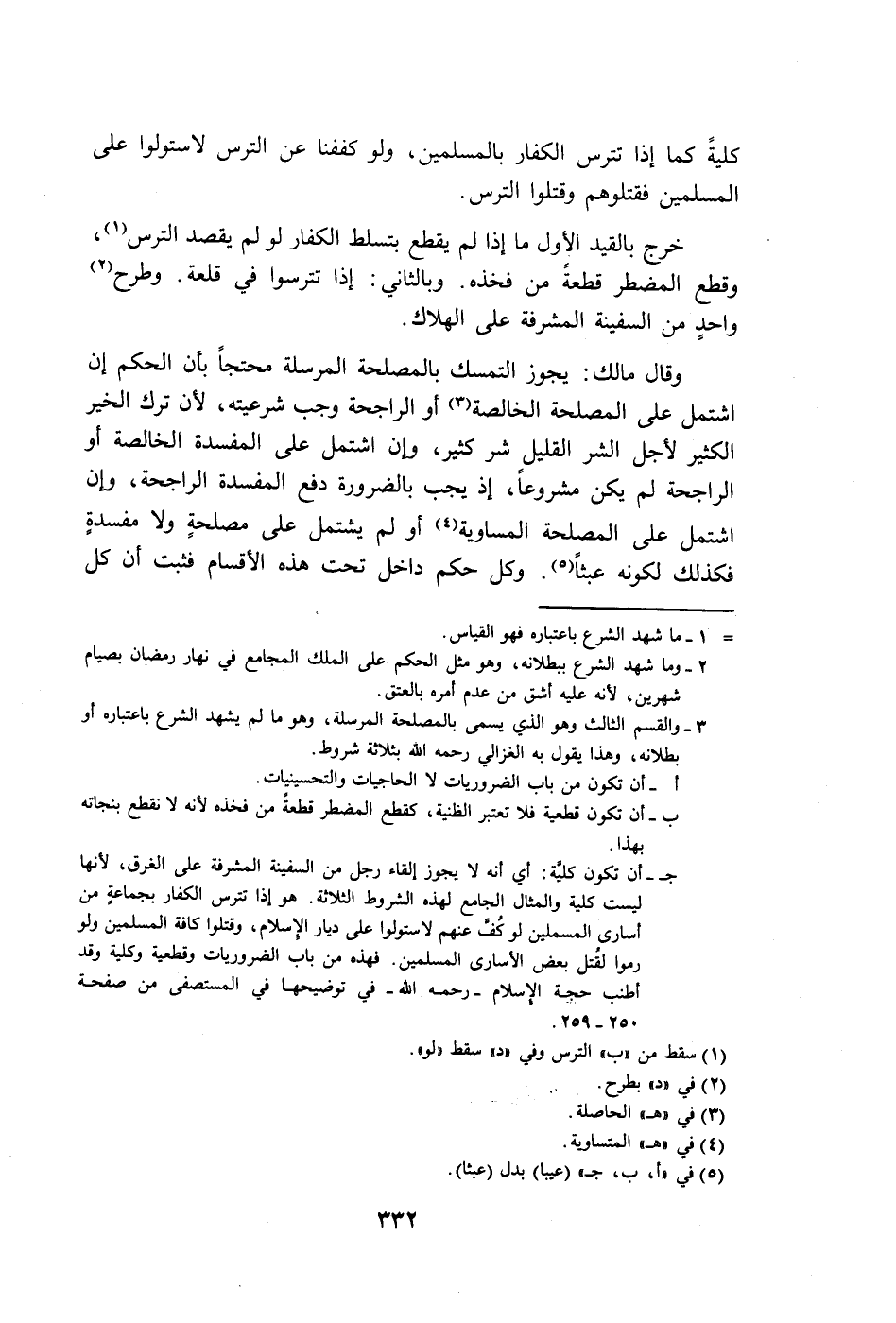 رموا لقتل بعض الأسارى المسلمين. فهذه من باب الضروريات وقطعية وكلية وقد أطنب حجة الإسلام- رحمه الله- في توضيحها في المستصفى من صفحة ٢٥٠ - ٢٥٩