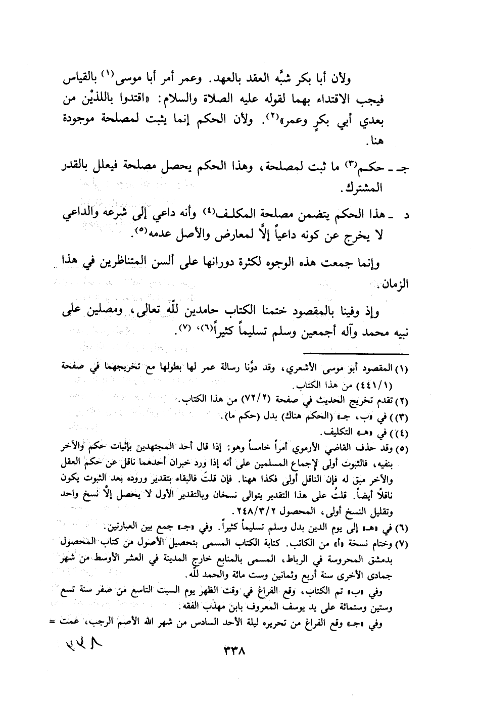 وإذ وفينا بالمقصود ختمنا الكتاب حامدين لله تعالى، ومصلين على نبيه محمد وآله أجمعين وسلم تسليماً كثيراً (٦)، (٧).