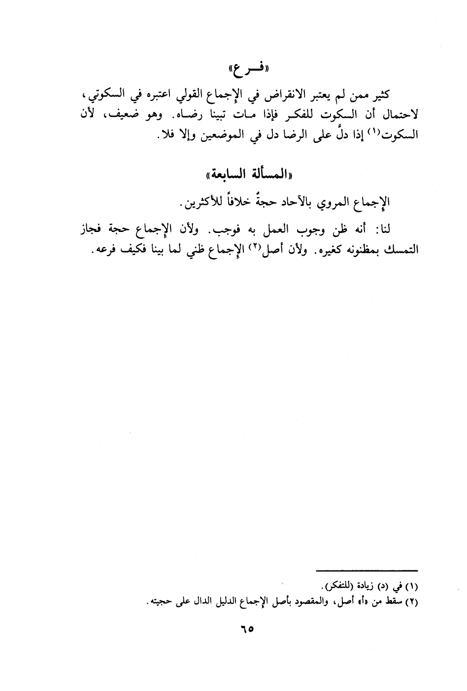 (٢) سقط من "أ" أصل، والمقصود بأصل الإجماع الدليل الدال على حجيته.