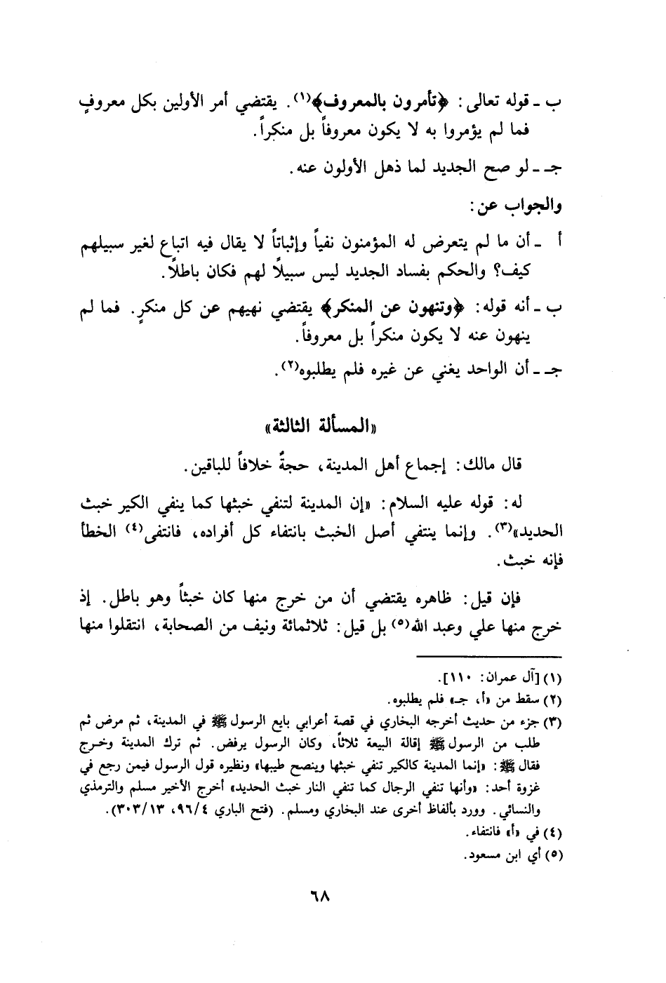 له: قوله عليه السَّلام: "إن المدينة لتنفي خبثها كما ينفي الكير خبث الحديد" (٣). وإنَّما ينتفي أصل الخبث بانتفاء كل أفراده، فانتفى (٤) الخطأ فإنَّه خبث.