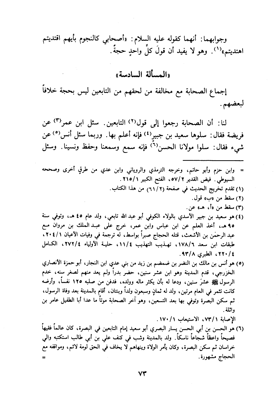 (٦) هو الحسن بن أبي الحسن يسار البصري أبو سعيد إمام التّابعين في البصرة، كان عالماً فقيهاً فصيحاً واعظاً شجاعًا ناسكاً. ولد بالمدينة وشب في كنف علي بن أبي طالب استكتبه والي خراسان ثم سكن البصرة، وكان يأمر الولاة وينهاهم لا يخاف في الحق لومة لائم، ومواقفه مع الحجاج مشهورة. =