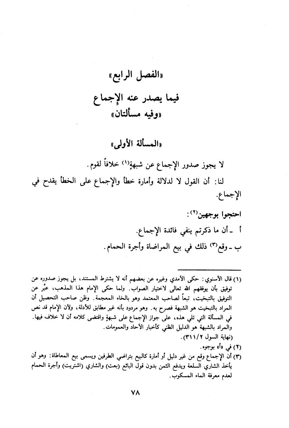 " الفصل الرابع" فيما يصدر عنه الِإجماع "وفيه مسألتان"