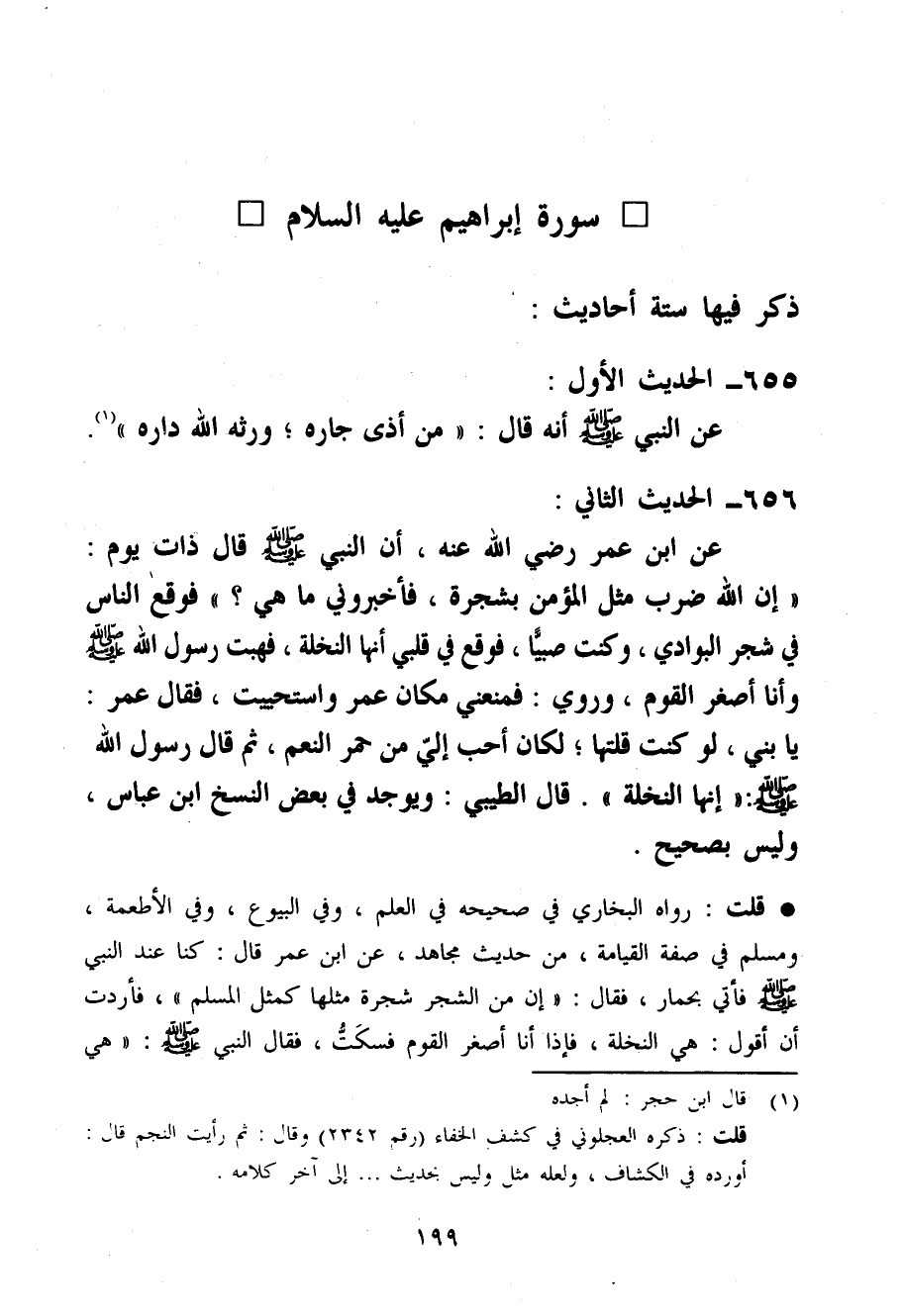 قلت رَوَاهُ البُخَارِيّ فِي صَحِيحه فِي الْعلم وَفِي الْبيُوع وَفِي الْأَطْعِمَة وَمُسلم فِي صفة الْقِيَامَة من حَدِيث مُجَاهِد عَن ابْن عمر قَالَ كُنَّا عِنْد النَّبِي صَلَّى اللَّهُ عَلَيْهِ وَسَلَّم َ فَأَتَى بِحِمَار فَقَالَ (إِن من الشّجر شَجَرَة مثلهَا كَمثل الْمُسلم) فَأَرَدْت أَن أَقُول هِيَ النَّخْلَة فَإِذا أَنا أَصْغَر الْقَوْم فَسكت فَقَالَ النَّبِي صَلَّى اللَّهُ عَلَيْهِ وَسَلَّم َ (هِيَ