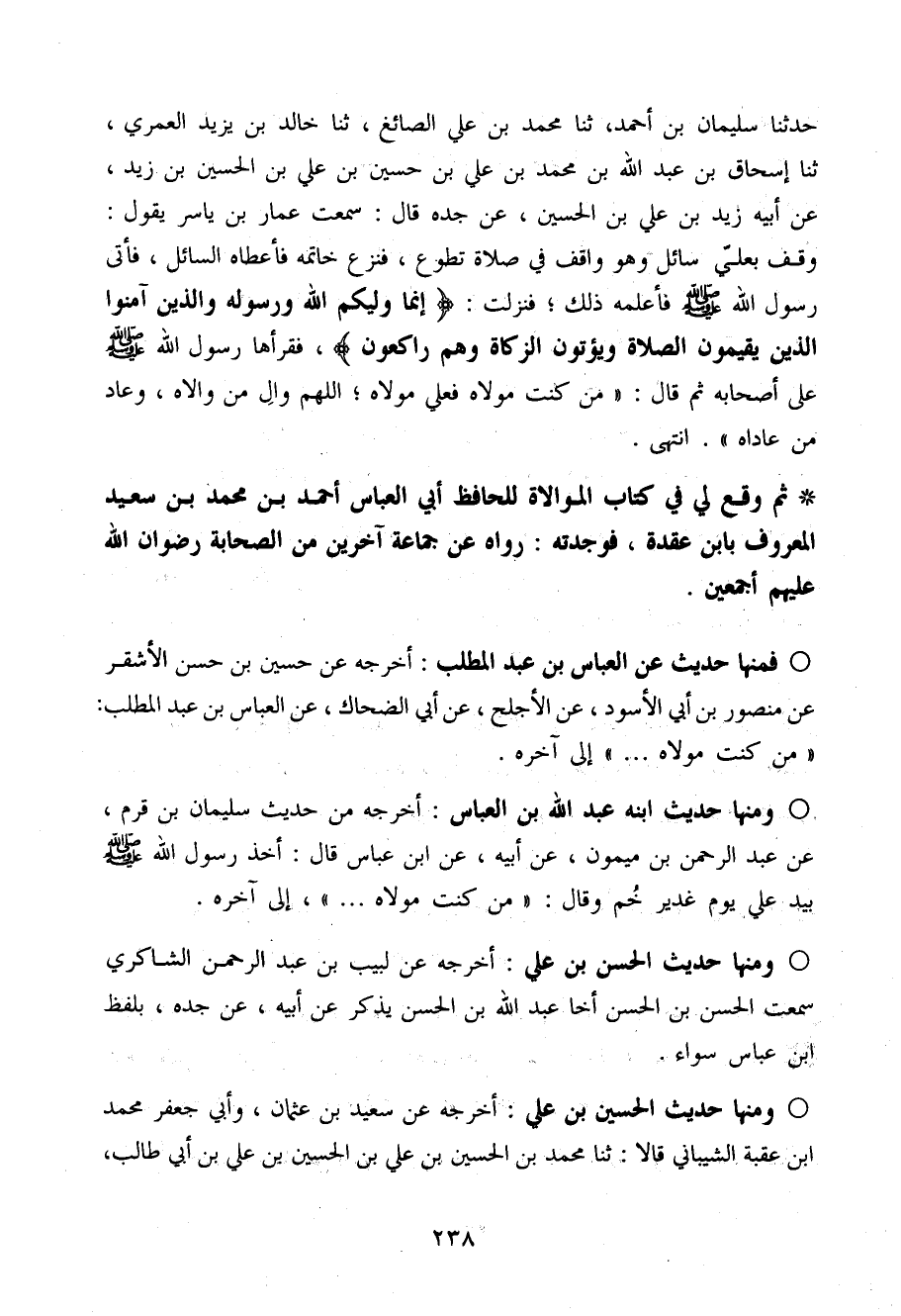 ثمَّ وَقع لي فِي كتاب الْمُوَالَاة لِلْحَافِظِ أبي الْعَبَّاس أَحْمد بن مُحَمَّد بن سعيد الْمَعْرُوف بِابْن عقدَة فَوَجَدته رَوَاهُ عَن جمَاعَة آخَرين من الصَّحَابَة رضوَان الله عَلَيْهِم أَجْمَعِينَ